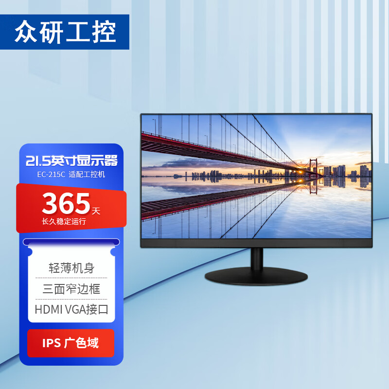 众研EC-215C 21.5英寸显示器 工控专用 长久稳定运行 HDMI VGA接口 高清分辨率