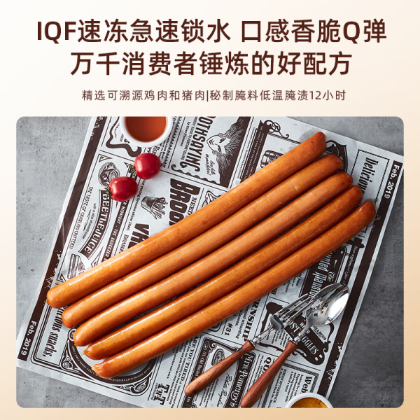 大成德式香肠经典30g烘焙烤肠胡桃木烟熏味商用面包热狗