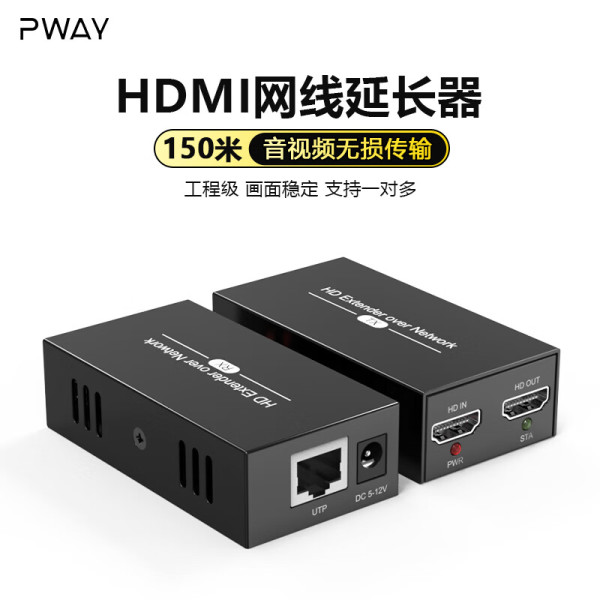 PWAY HDMI150米高清音视频无损传输转网口rj45可过千兆交换机支持一对多CAT6 HDMI网线延长器-1发1收