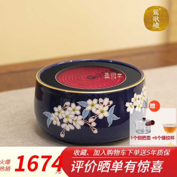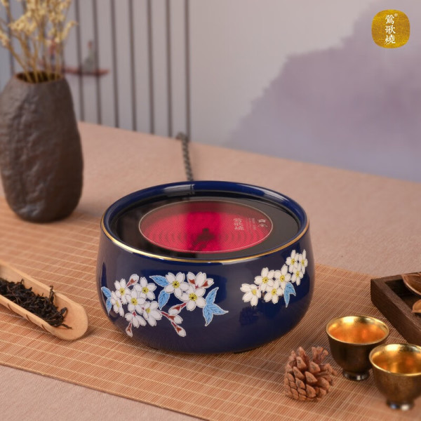 莺歌烧 电陶炉煮茶非电磁技术功夫茶泡茶炉迷你静音铁壶银壶茶炉 京都蓝地雪樱