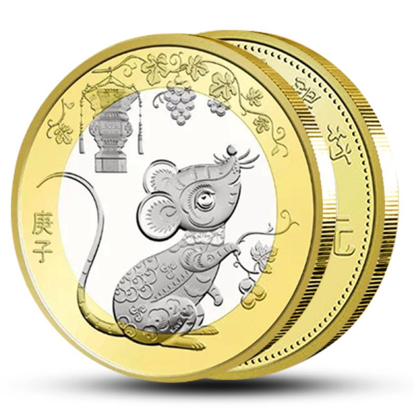 真典 鼠年纪念币 贺岁硬币10元鼠币 流通币