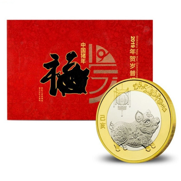 真典 2019年猪年纪念币10元面值双色流通纪念币 生肖猪年贺岁猪币 单枚带康银阁装帧卡册