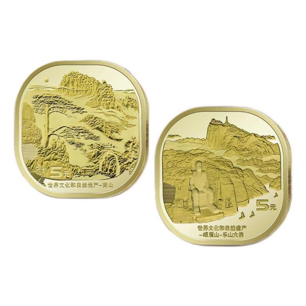 真典 2023年黄山纪念币 峨眉山纪念币面值5元世界文化和自然遗产纪念币