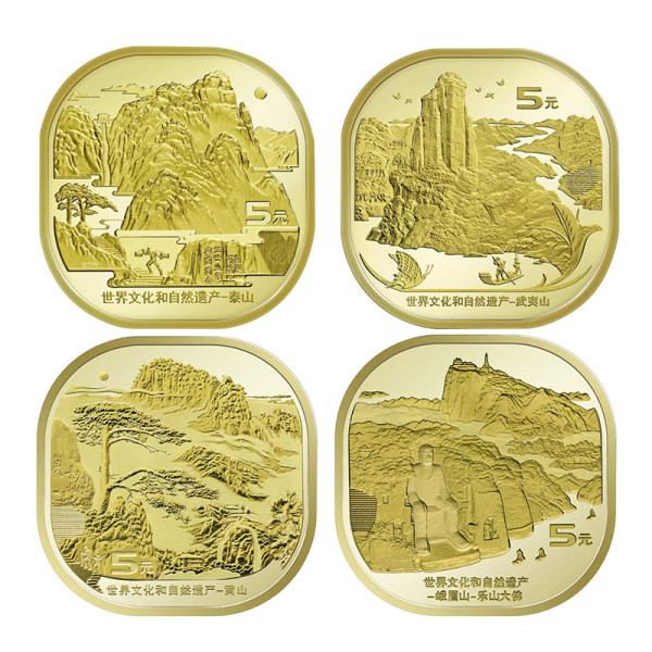 真典 2019-2023年世界文化和自然遗产 泰山武夷山黄山峨眉山纪念币套装