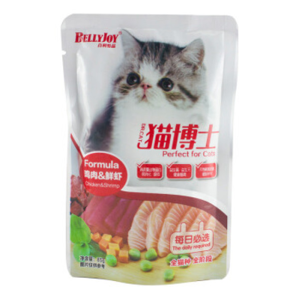 百利怡品 BELLYJOY 猫零食猫湿粮猫软包罐头鸡肉+鲜虾 85g
