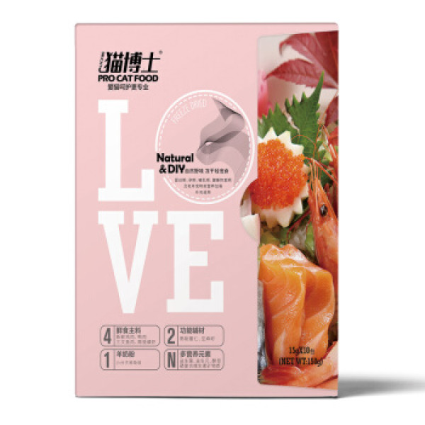 百利怡品 猫博士 猫零食 冻干零食 冻干沙拉 鸡肉 鸭肉 三文鱼肉 牛肝 薏仁 羊奶粉 混合口味冻干 15g*10袋
