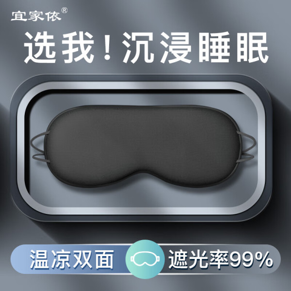 宜家依真丝眼罩睡眠遮光可调节透气男女士通用睡觉桑蚕丝出差午睡眼罩舒适旅行手工制作 深邃黑 真丝款-纯黑