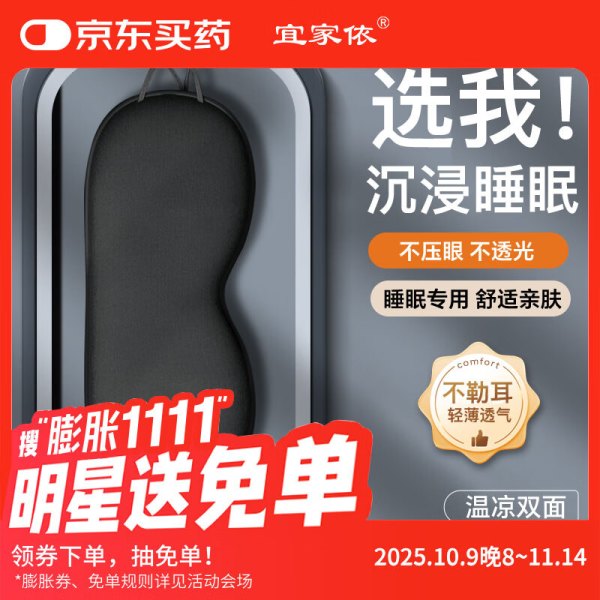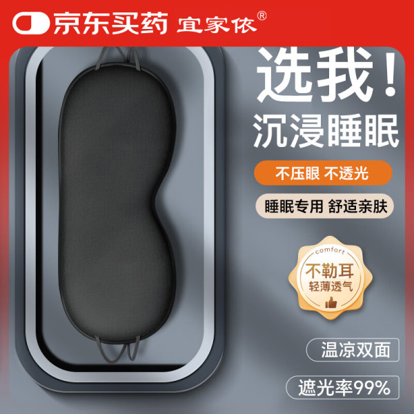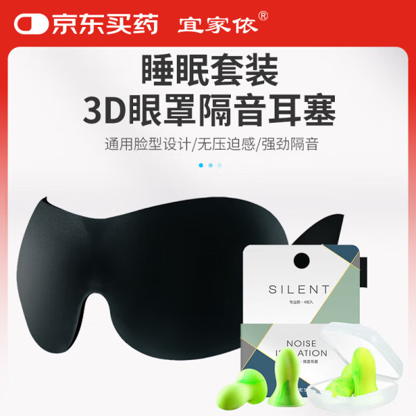 宜家依 无鼻翼黑+专业4枚 3D眼罩睡眠耳塞遮光隔音可调节透气