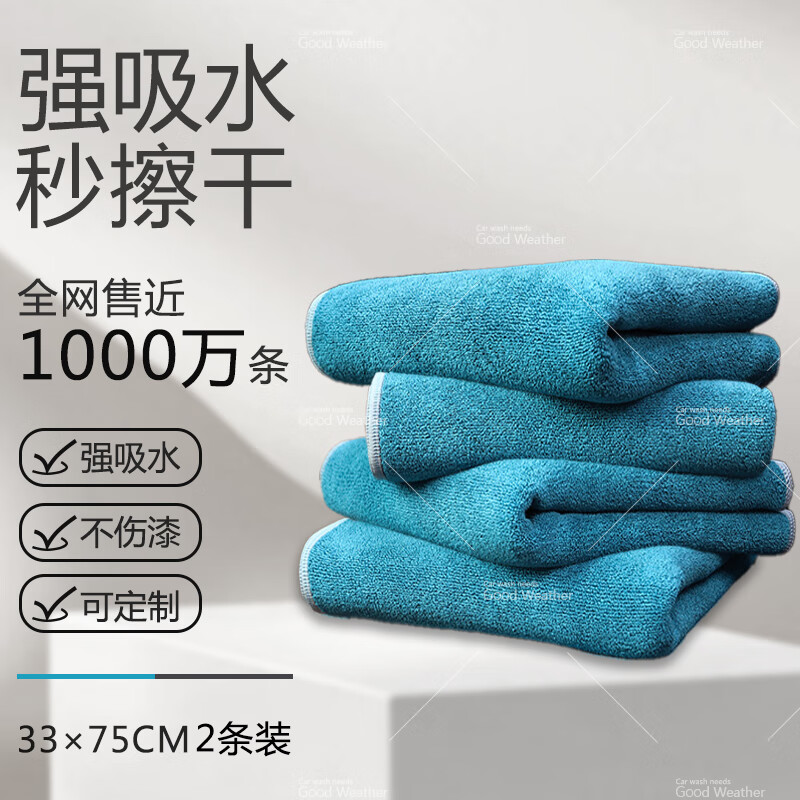 Good Weather 天气不错 洗车毛巾 蓝咖 30*70cm*2条