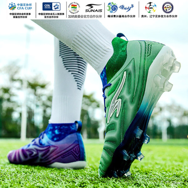 舒莱狮高帮足球鞋男女梅西C罗AG长钉成人中小儿童比赛人草训练球鞋 9003绿蓝长钉 35