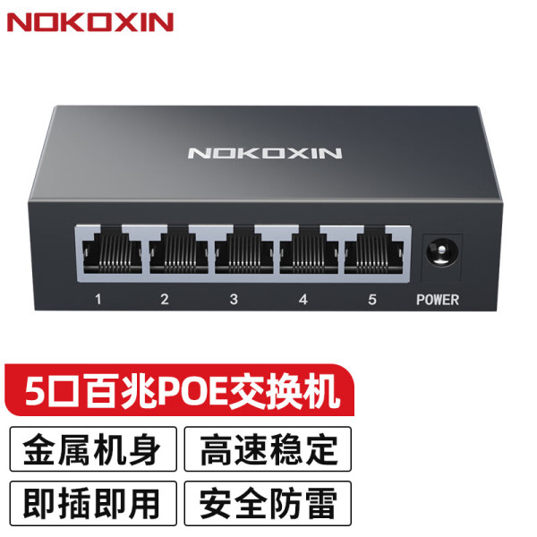 Nokoxin 诺可信 POE交换机 百兆千兆非网管企业监控摄像头分离器 网线供电交换器 5口百兆/48W(4百兆POE口+1百兆)