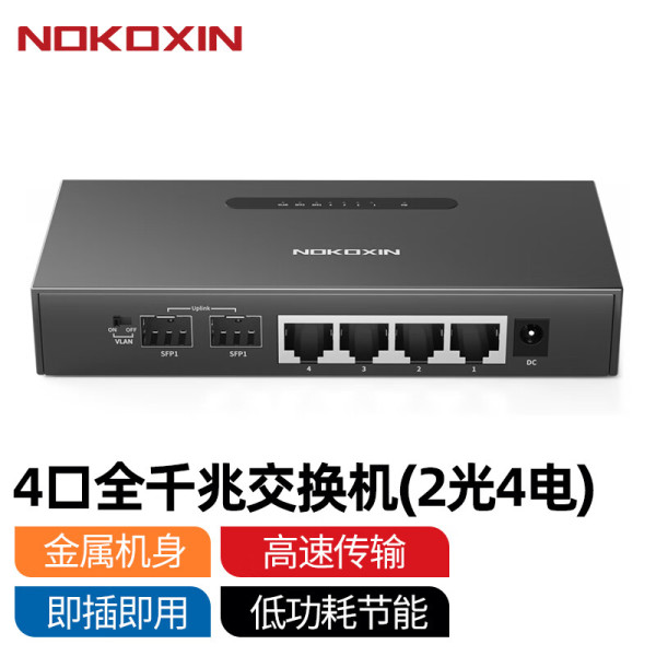 诺可信(Nokoxin)2.5G交换机10G光口支持猫棒千兆宽带 一键VLAN模式非管理型 4口全千兆交换机(2光4电)