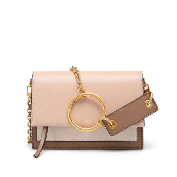 VENUCO斜挎包女真皮小包2019新款女包时尚学生夏季链条手提单肩风琴包 粉色