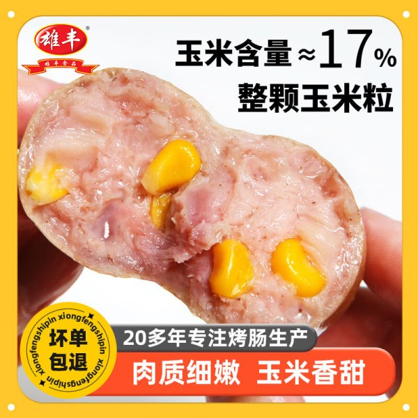 【交个朋友专属】雄丰地道肠500g*4袋共40根纯火山石烤肠美味热狗肠