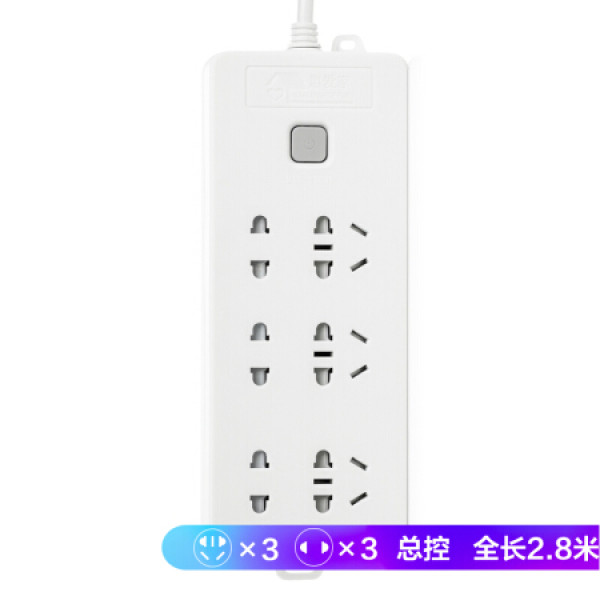 惠爱家TF-556插排2.8米插线板 6孔位插座/接线板/拖线板/排插/电插板 儿童保护门安全插座 总控开关