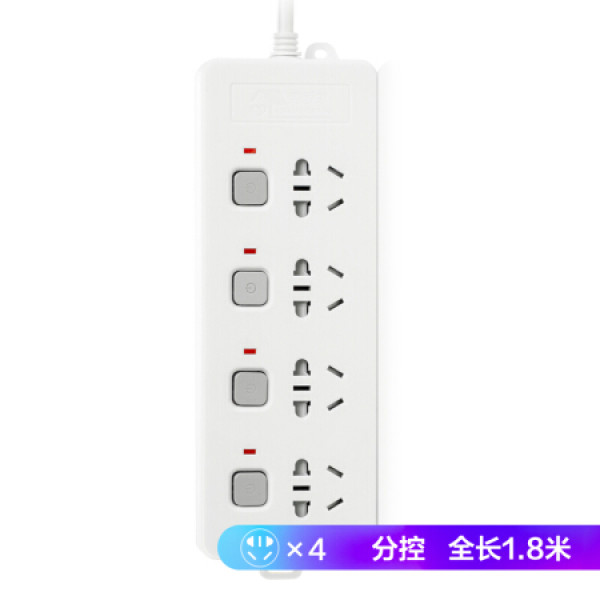 惠爱家TF-534插排1.8米插线板 4孔位插座/接线板/拖线板/排插/电插板 儿童保护门安全插座 分控开关