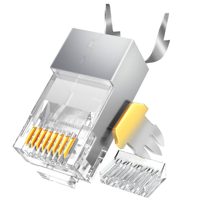 山泽 八类网线屏蔽水晶头 8类万兆50U镀金网络连接器 CAT8三件式工程级RJ45网络接头 10个 8010SJT