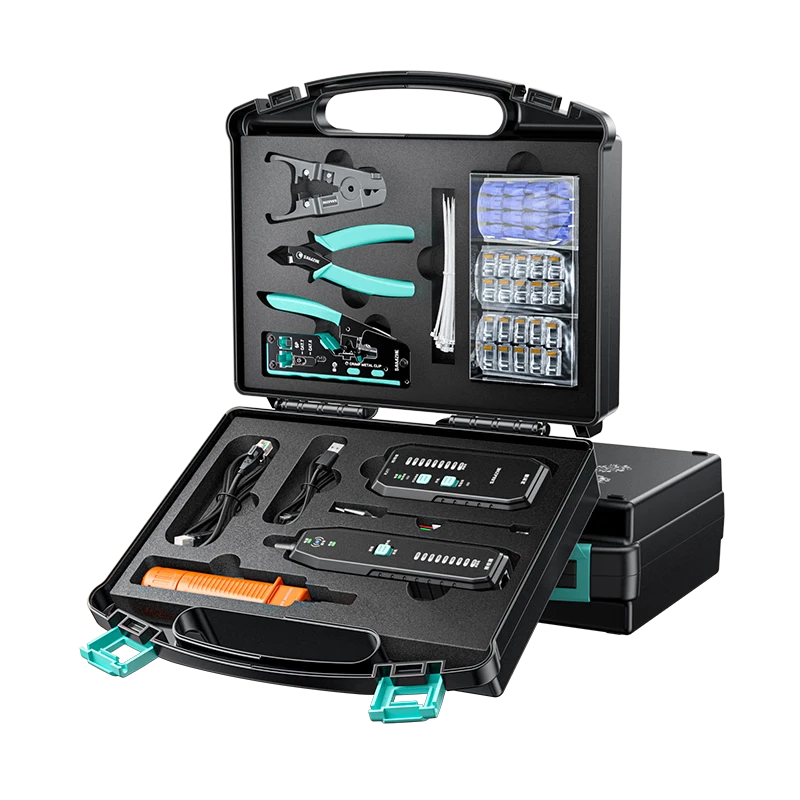 山泽网线钳网络工具箱套装六类七类RJ45专用 带寻线测试仪水晶头剥线打线压线刀109件套SZ-160
