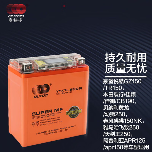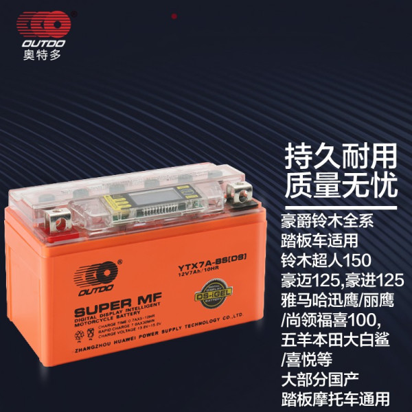 奥特多 OUTDO 胶体摩托车电瓶12V7AH踏板车YTX7A铃木UU125豪爵海王星光阳豪迈女士摩托车电池通用