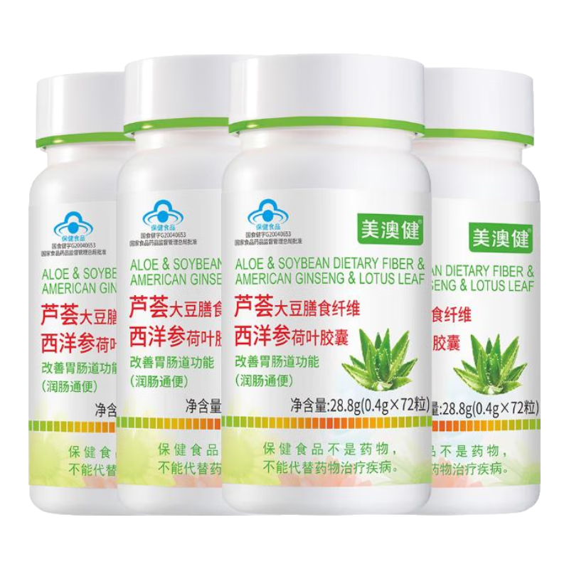 美澳健(MEIAOJIAN)芦荟胶囊大豆膳食纤维西洋参荷叶胶囊润肠通便秘成人中老年清宿便 芦荟胶囊 72粒*4瓶 (无赠品)