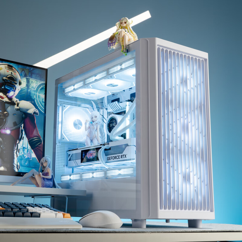 爱国者(aigo)御风W80 白色 电脑主机箱 M-ATX台式机箱(全侧透钢化玻璃/栅格式网孔散热面板/360水冷/4090)
