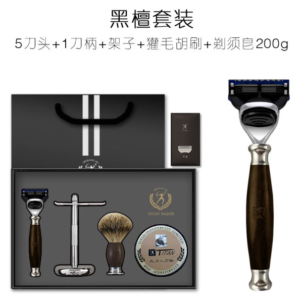 大力人黑檀天然手柄德国手动剃须刀男士刮胡刀老式五层剃须刀礼盒 尊贵黑檀五层套装