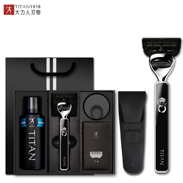 大力人TITAN手动剃须刀德国刮胡刀男士五层刀片礼盒包装生日十二生肖私人订制你我他专属 巳蛇(十二生肖底座套装)