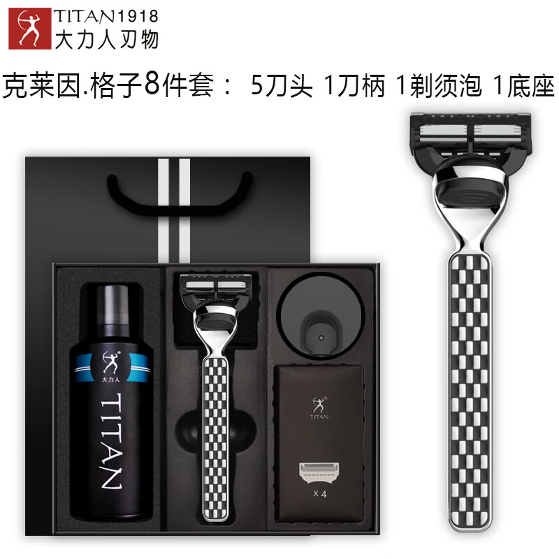 大力人德国手动剃须刀男士刮胡刀老式五层剃须刀礼盒装情人节礼物 克莱因手柄 5刀头 剃须泡 底座