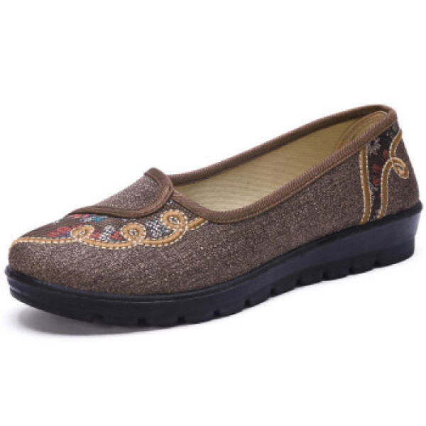 ANKANG 鮟鱇 老年女妈妈老北京布鞋套脚浅口轻便AK79808 咖色 40
