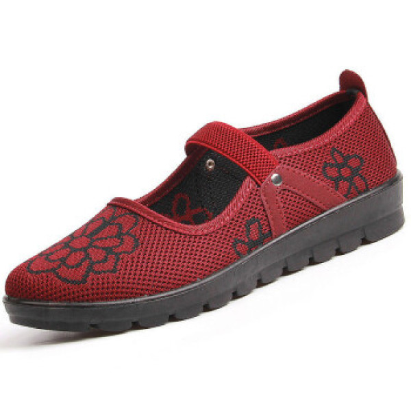 ANKANG 鮟鱇 老人奶奶老北京布单鞋飞织面软底舒适休闲AK69019 红色 40