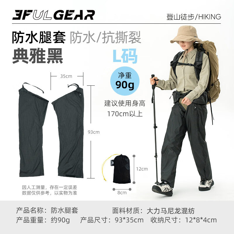 三峰出三峰雨衣户外登山徒步男女通用超轻爬山钓鱼超轻雨披多功能防雨15 大力马防水腿套 典雅黑 L