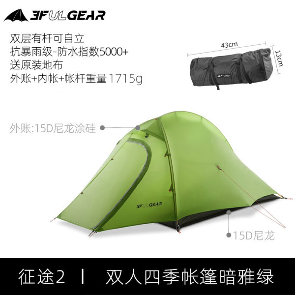 移动端:三峰出 三峰 飘云2 超轻涂硅防水防暴雨抗风双人帐篷