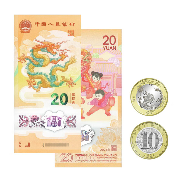 邮币卡 2024年龙年纪念币 第二轮龙年生肖纪念币 贺岁币 10元硬币 龙币1枚+龙钞1张(号码随机)