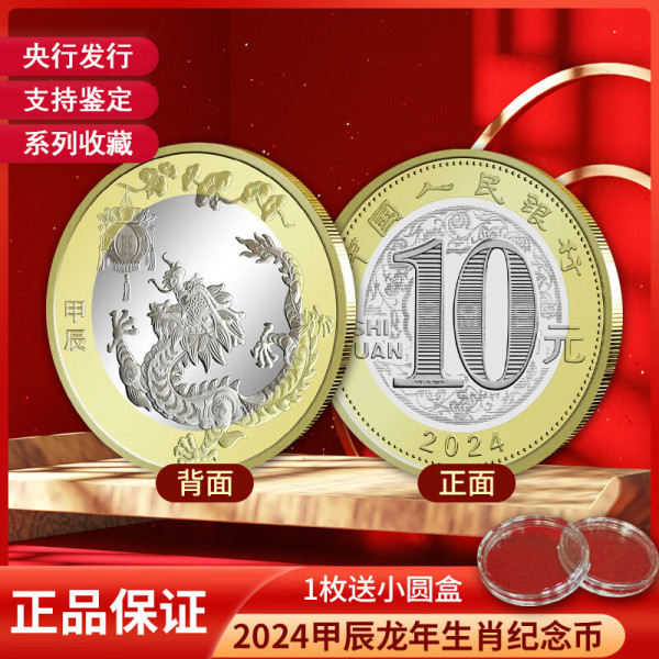 邮币卡 晗樊藏品 2024甲辰龙年生肖纪念币 二轮生肖纪念币 1枚币(送小圆盒)