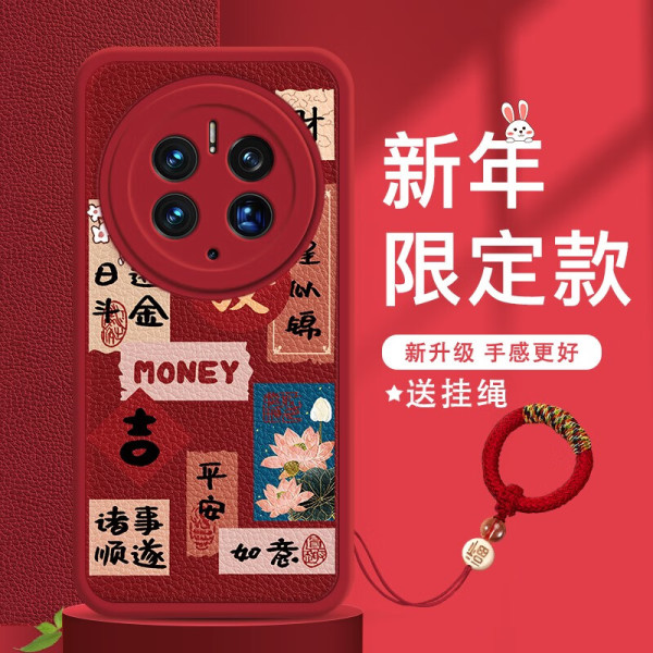 潮臣适用 华为Mate50Pro手机壳5G国潮mate50E中国风全包防摔小羊皮硅胶保护套书法男 华为Mate50Pro【中国红】+国潮挂绳