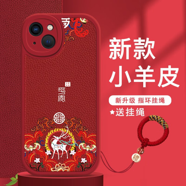 潮臣适用iPhone13ProMax手机壳国潮中国风苹果15Promax镜头全包皮套防摔小羊皮硅胶男 苹果13【中国红】+国潮挂绳
