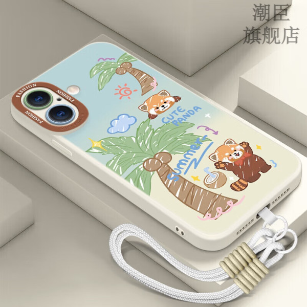 潮臣 适用iPhone16手机壳带挂绳男女新款苹果16promax镜头全包液态硅胶16plus防摔可爱风多巴胺动物软壳 苹果16