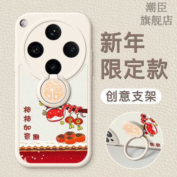 潮臣 新年圣诞红色壳适用OPPO FindX8Pro防摔带支架手机壳 中国风皮套