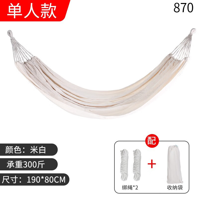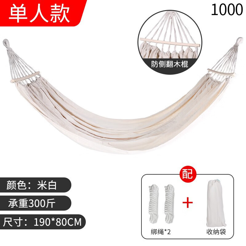凡卡印象吊床宿舍野外户外秋千宿舍吊床室内 寝室 学生双人单人 【米白-防侧翻款】80宽帆布吊床