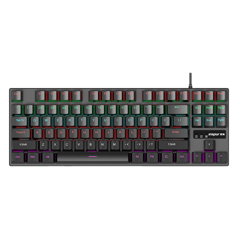 浪潮机械键盘 混彩背光87键红轴 办公电竞游戏娱乐台式机笔记本电脑通用