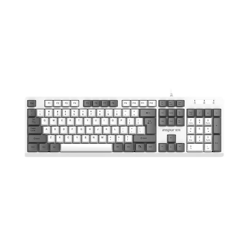 浪潮有线键鼠套装 白灰色键盘鼠标套装 全尺寸商务办公 防泼溅 笔记本电脑键盘台式机一体机通用