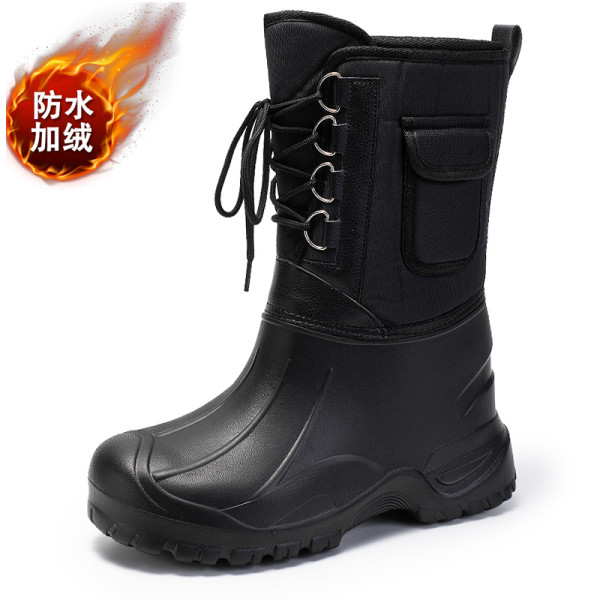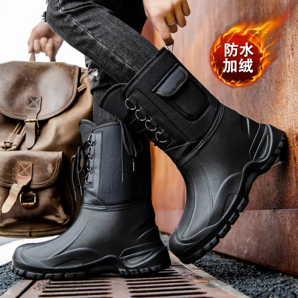 东北冬季骑行户外加绒棉鞋男士钓鱼防水防滑雨鞋高筒雪地靴男加厚