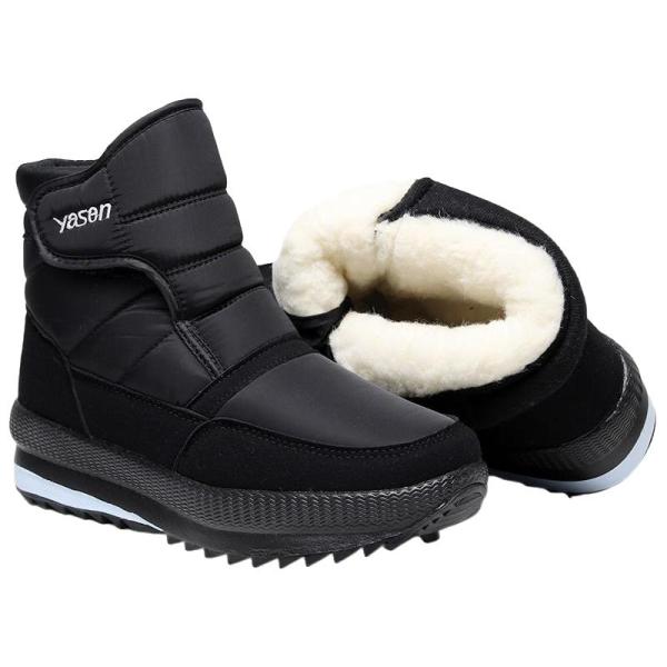 雅森东北冬季加厚雪地靴女高帮棉鞋女中老年人加绒防滑妈妈鞋短筒靴子 R7黑色 37