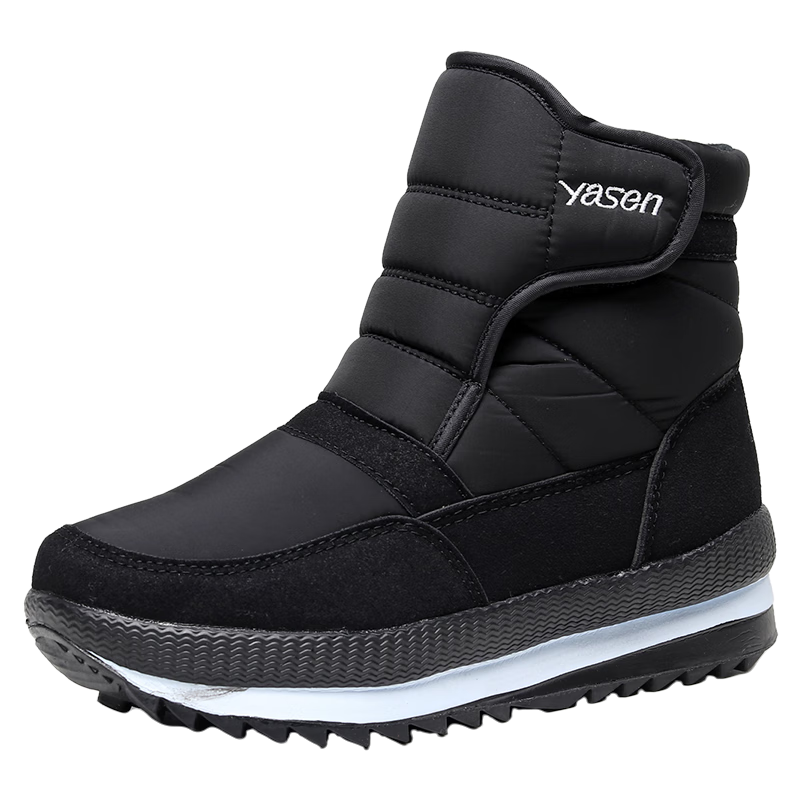 雅森东北冬季加厚雪地靴女高帮棉鞋女中老年人加绒防滑妈妈鞋短筒靴子 R1黑色 41