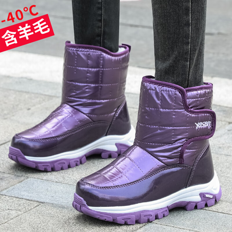 雅森东北冬季加厚雪地靴女高帮棉鞋女中老年人加绒防滑妈妈鞋短筒靴子 R1紫色 36