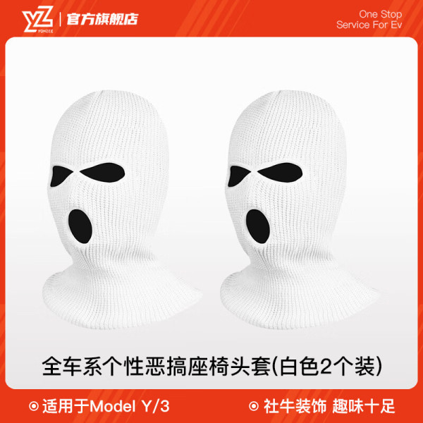 YZ 特斯拉 Model3/Y 搞笑座椅头套 白色2件
