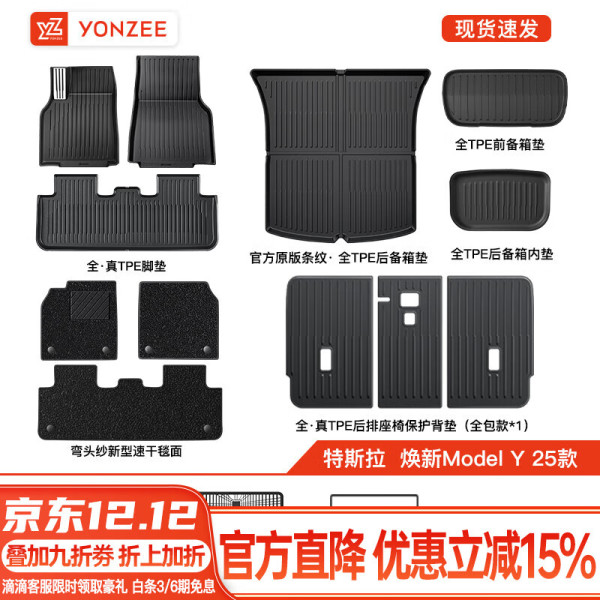 特斯拉 Model Y25款 TPE汽车脚垫 全套防护配件
