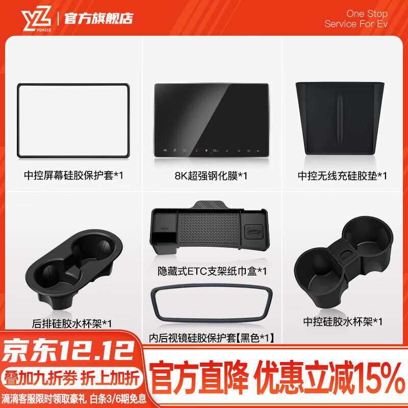YZ适用于特斯拉Model3/y中控水杯槽底座车载硅胶杯架限位器改装配件 焕新版Model3/Y甄选套餐-9件套