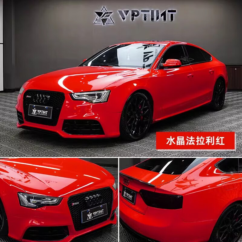 VPTINT高亮水晶系列汽车改色膜火山灰电光金属系列装甲绿法拉利红个性午夜蓝全车身超亮漆面保护膜 水晶法拉利红 10cm宽*1米长(宽度不变/长度叠加)