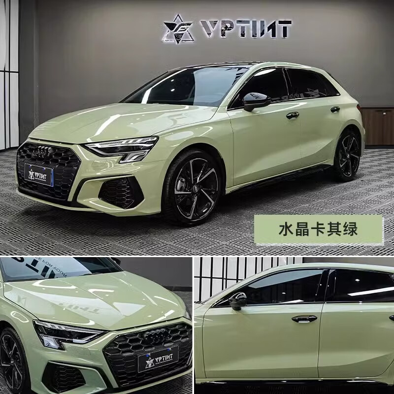 VPTINT高亮水晶系列汽车改色膜火山灰电光金属系列装甲绿法拉利红个性午夜蓝全车身超亮漆面保护膜 水晶卡其绿 30cm宽*1米长(宽度不变/长度叠加)